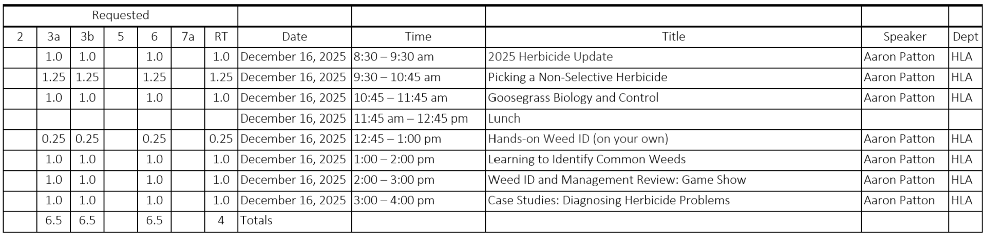 This one-day workshop is designed for beginners and more experienced professionals who want more information on herbicide use principles and discussions of how to control common green industry weeds. This workshop offers training in weed identification, integrated weed management, selecting the right herbicides, enhancing weed control, and updates on the latest weed research findings.